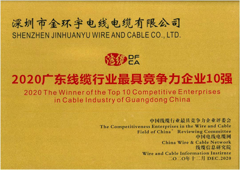 喜讯!金环宇电线电缆入榜“2020广东线缆行业最具竞争力企业10强”